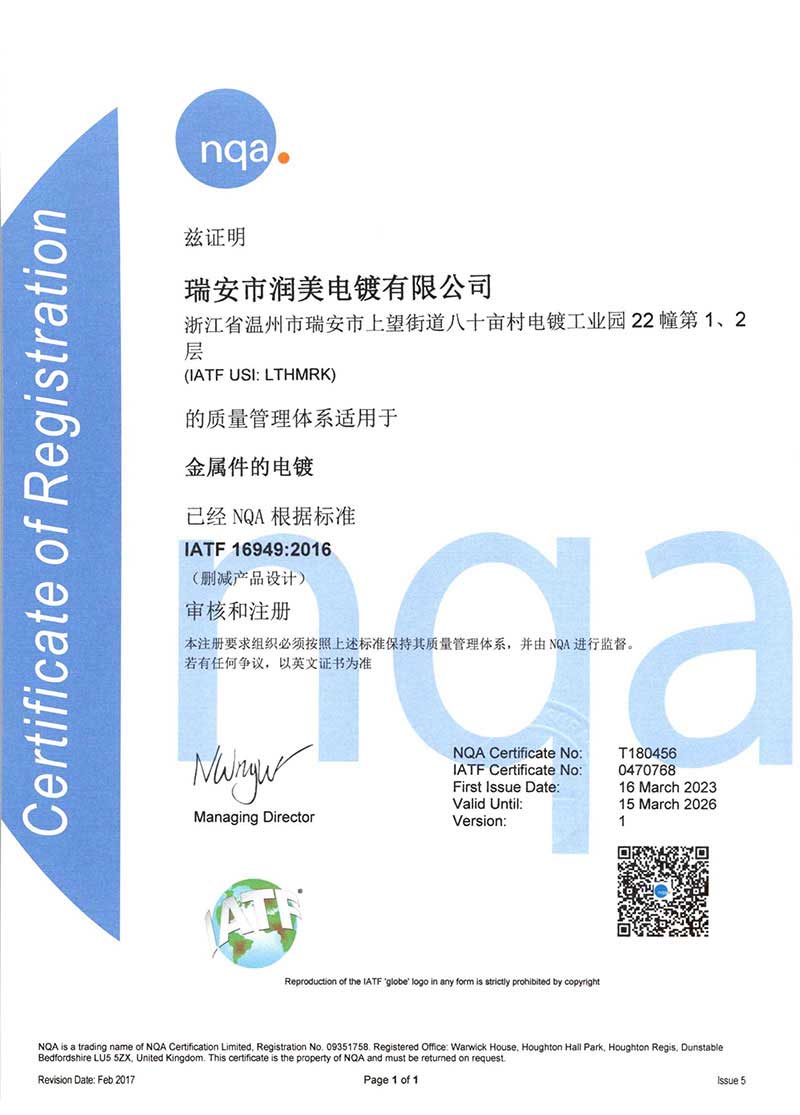 Copyright ©2025 瑞安潤美電鍍有限公司 版權(quán)所有 地址:溫州市瑞安東山八十畝電鍍工業(yè)園 咨詢熱線:13706888155